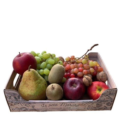figue, pomme, poire, raisin noir, raisin sans pépins,noix